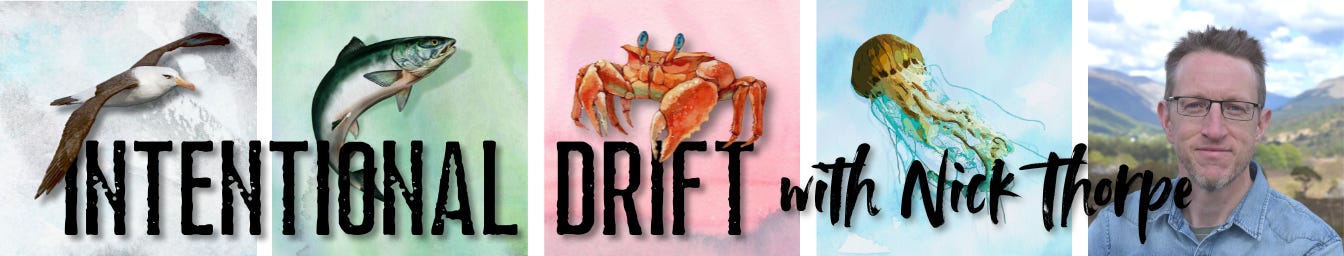 Intentional Drift is the nearest thing I have to a navigation plan, as I attempt to notice more and micromanage less. Like the 6th-century seafaring peregrini who set sail into the unknown deep, I guess I’m seeking a place of resurrection for myself and my fellow humans, as I navigate further from prescribed maps and into the magnificent mutiny of midlife.